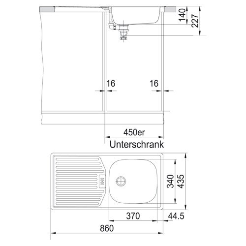 Rieber E 86 K 72010906 - Lavello a una vasca (a destra), colore: Bianco