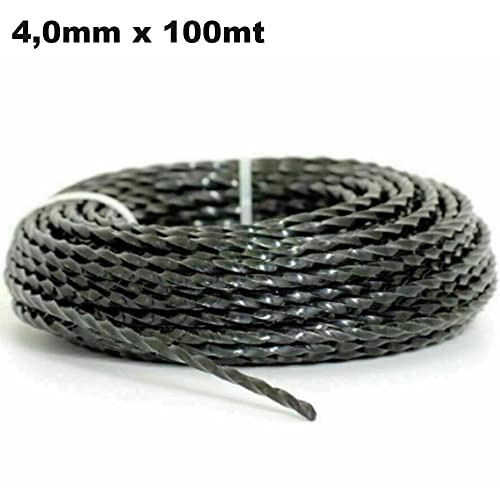 RIEGOLUX Filo decespugliatore nylon elicoidale, nero, 4 mm x 100 m, filo decespugliatore per disco decespugliatore, filo di nylon decespugliatore per tosaerba, giardino ed esterno