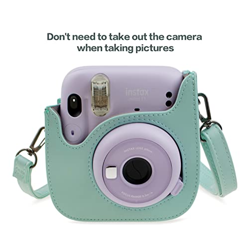 Rieibi Custodia morbida in pelle PU Mini 11, custodia protettiva per Fujifilm Instax Mini 11/Mini 9/Mini 8/Mini 8+ fotocamera istantanea con tracolla regolabile (YZ)