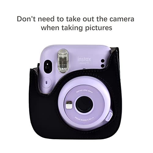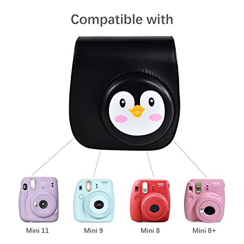 Rieibi Custodia protettiva in pelle PU Mini 11 per Fujifilm Instax Mini 11/Mini 9/Mini 8/Mini 8+ fotocamera istantanea con tracolla regolabile (pinguino nero)