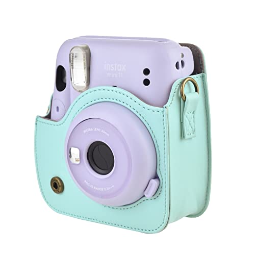 Rieibi Custodia protettiva in pelle PU Mini 11 per Fujifilm Instax Mini 11/Mini 9/Mini 8/Mini 8+Fotocamera istantanea con tracolla regolabile, Verde, Beauty Case