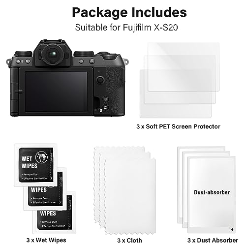 ❤Vestibilità perfetta: 3 pellicole protettive in morbido PET sono perfette per lo schermo LCD della fotocamera Fujifilm X-S20 XS20. La pellicola è tagliata secondo la fotocamera Fuji XS20, si adatta alla fotocamera al 100%.