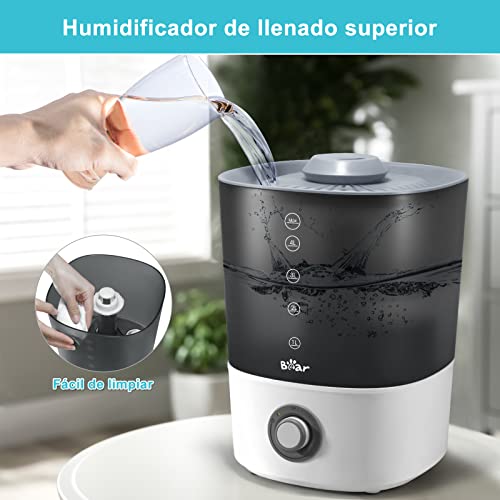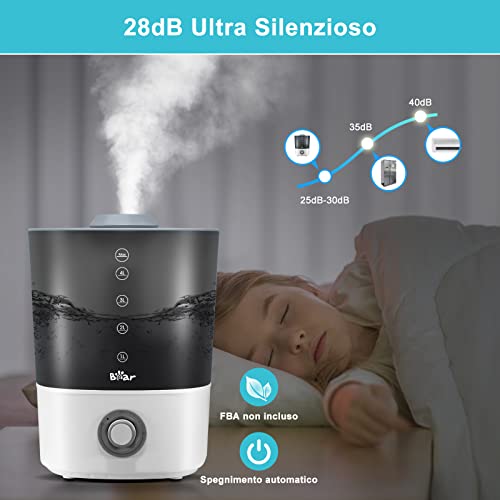 Bear 5L a Riempimento Diretto Dall'alto,Umidificatore a Nebbia Fredda,Adatto per Piante e Bambini,35 Ore di Umidificazione Continua,Spegnimento Automatico,Super Silenzioso,Facile da Pulire