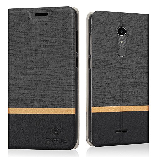 Riffue Alcatel A3 XL Custodia, Cover Alcatel A3 XL, Copertura Protettiva Sottile del Modello retrò in Denim a Portafoglio Liscio in Pellicola PU per Alcatel A3 XL - Nero