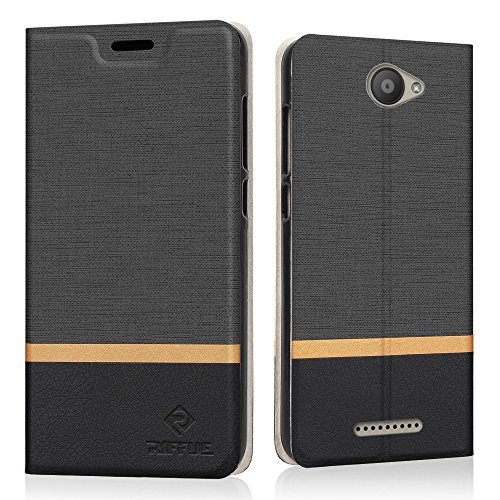 Riffue BQ Aquaris U/U Lite Custodia, Cover per BQ Aquaris U/U Lite, Copertura Protettiva Sottile del Modello retrò in Denim a Portafoglio Liscio in Pellicola PU per BQ Aquaris U/U Lite - Nero