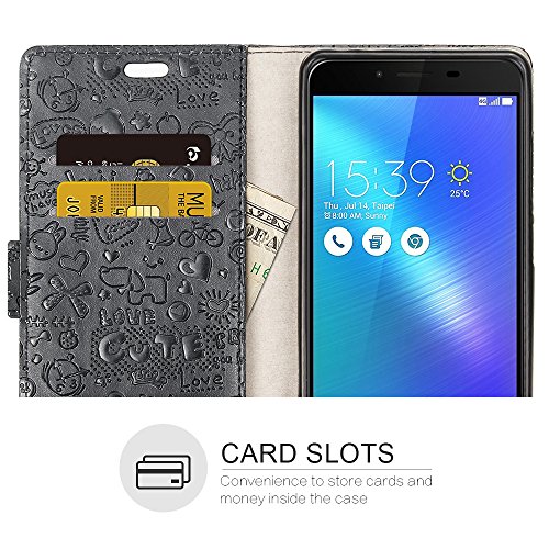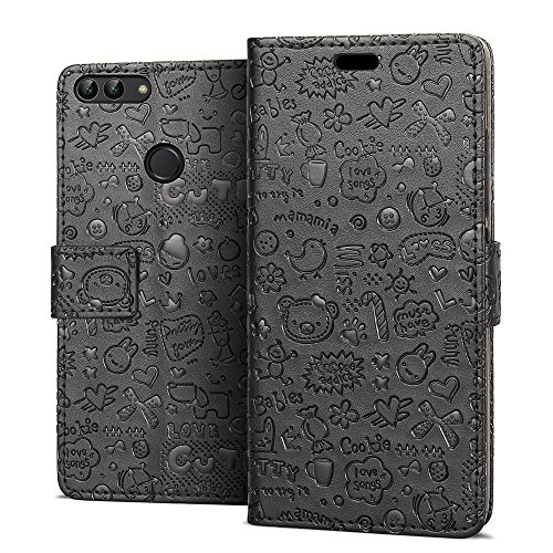 Riffue Cover Huawei P Smart, Custodia Huawei P Smart Morbida Slim Sottile Libro Flip Pelle PU Chiusura Magnetica Soporto Stand Portafoglio Slot - Nero