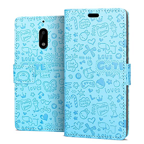 Riffue Cover Nokia 6, Nokia 6 Custodia Morbida Slim Sottile a Libro Flip di Pelle PU Moda Disegno Adorabile Cute, Chiusura Magnetica, Soporto Stand, Portafoglio, Slot, Case per Nokia 6 5.5" - Blu