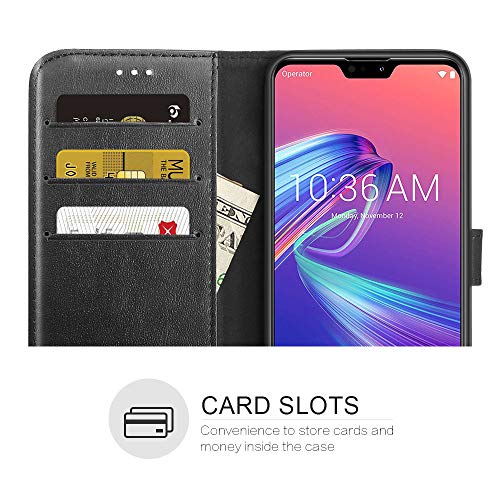 Riffue Cover ASUS Zenfone Max PRO (M2), Custodia Flip Caso in Pelle PU Portafoglio Chiusura Magnetica Slot per Schede Sottile Protettiva Case per ASUS Zenfone Max PRO (M2) ZB631KL- Nero