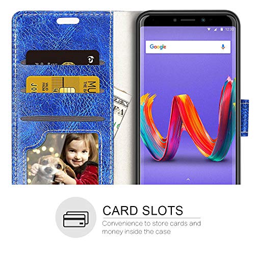Riffue Custodia Wiko Harry 2 / Wiko Tommy 3 Plus, Cover Wiko Harry 2/Tommy 3 Plus Flip Caso in TPU Portafoglio Chiusura Magnetica Slot per Schede - Blu