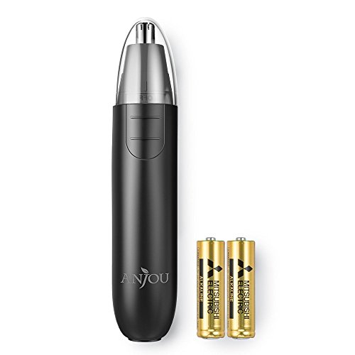 Rifinitore Naso Anjou Tagliapeli per il Naso e Orecchie con 2 x Doppie Lame in Acciaio Inossidabile, Rifinitore di Precisione per Naso, Orecchie e Viso (Testina Staccabile, Design Lavabile, Luce LED, 2 x Batterie di Tipo AA per 90 Ore di Utilizzo per Batteria) -Nero