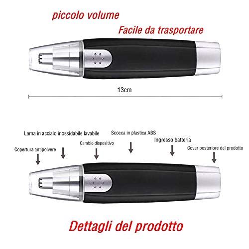 [Multifunzionale]: il tagliacapelli orecchio-naso è realizzato in acciaio inossidabile di alta qualità, che può rimuovere efficacemente e comodamente i peli in eccesso da naso, orecchie, sopracciglia, barba e viso. Il design a un pulsante è facile da usare, adatto sia per uomini che per donne.
