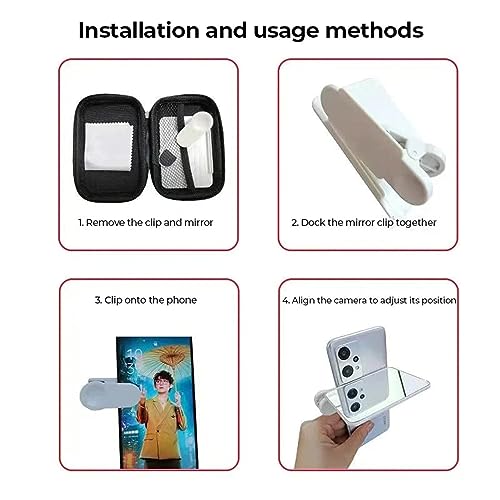 Kit di Clip per riflessione Specchio Fotocamera Smartphone | 1/2-Kit Selfie Mirror Reflection per Fotocamera Telefono | Accessori per telefoni cellulari con Clip per Fotocamera a Specchio Regolabile