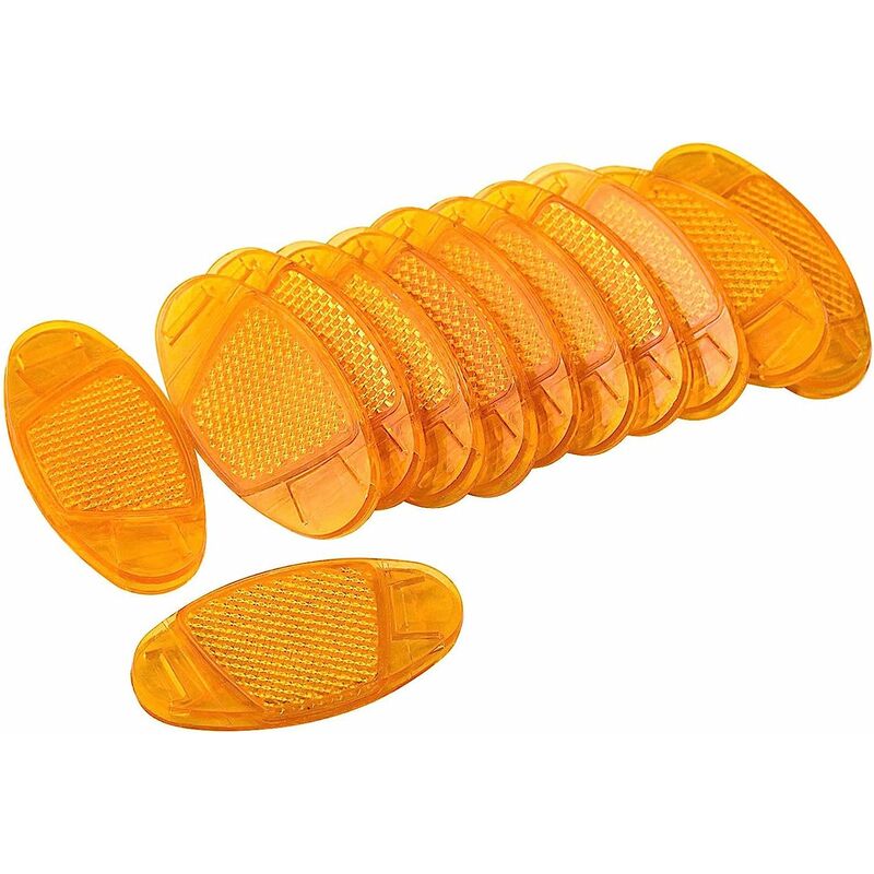 Specifiche: Materiali: plastica. Dimensioni: 7,5 x 3,5 x 0,8 cm. Colore: giallo Quantità: 8 pezzi Funzioni: Segnalazione rapida ( nessuna batteria, riflette solo la luce). Contenuto della confezione: 8 riflettori per raggi per ruota bici.