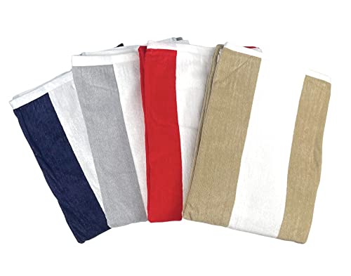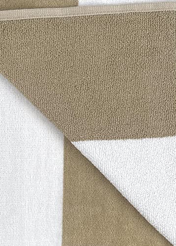 Telo Mare Rigato 90x165cm Telo in Spugna 100% Cotone Asciugamano Spiaggia Beach Towel (Beige - Bianco)