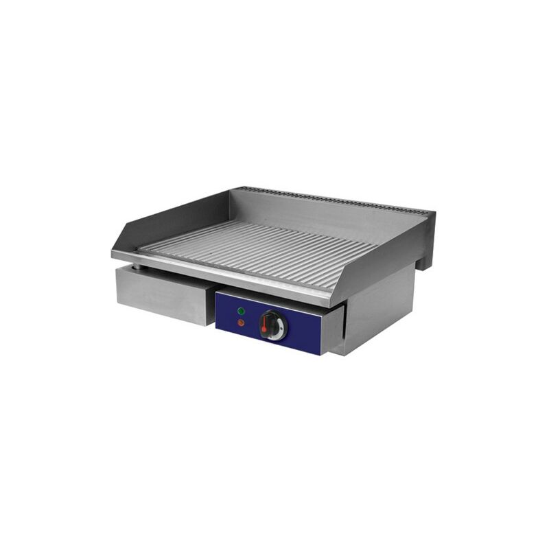 Codice RS3609 - Fry top elettrico da banco con piastra rigata, modello ST-9958G, dimensioni cm. 55x47x23 (lxpxh), 230 volt, 3.0 kw, resistenze corazzate in acciaio inox, piastra di cottura in acciaio a tenuta d'olio, paraspruzzi intorno alla zona di cottura, cassetto raccolta grassi.