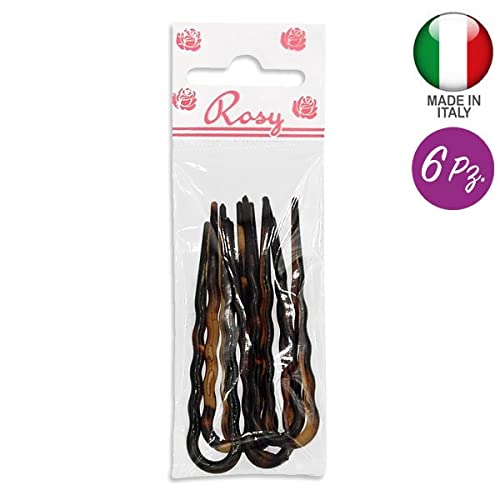 Fermacapelli - Set 6 pezzi Forcine per capelli ondulate in acetato cm 7 tartaruga - Made in Italy