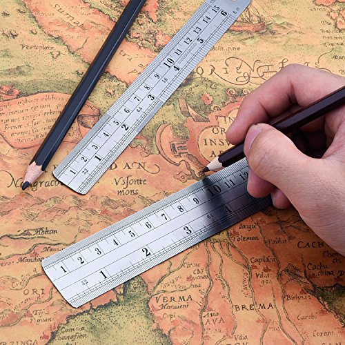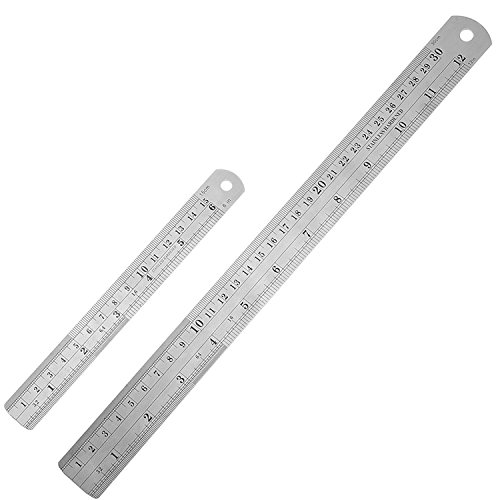 Kit Righelli D'acciaio Inox Metallico con Tabella di Conversione, 12 Pollici e 6 Pollici