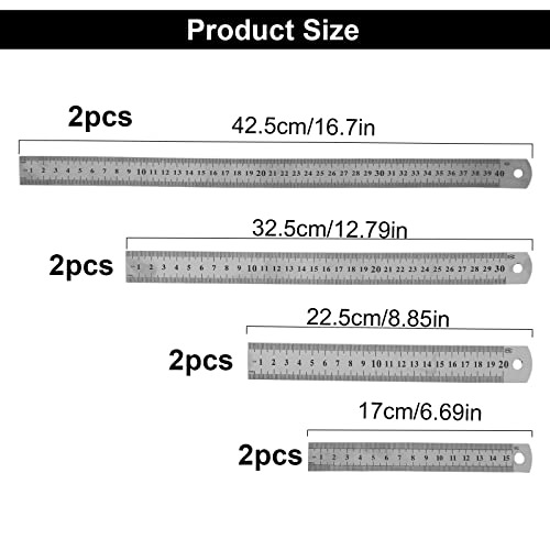 Contenuto della confezione: riceverete 8 righelli in acciaio inox in 4 lunghezze. 15 cm, 20 cm, 30 cm, 40 cm, adatto per tutte le esigenze di misurazione. I righelli sono forniti con una custodia protettiva. Migliore conservazione anche quando non in uso.