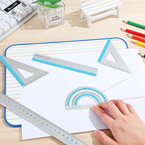 Set di 5 Righelli in Alluminio Kit Righello Architettonico Righello Dritto 15 cm 30 Cm, Righello Triangolare Righello Goniometro in Metallo Matematico Set per Studente Ufficio Scuola