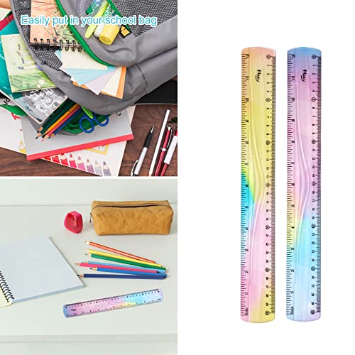 2Pz Righelli Flessibili per Scuola, Righello Pieghevole 30 cm Righelli in Plastica righello morbido Color Gradiente Righello con Scala in Centimetri e Pollici per Studenti Bambini Ufficio Casa