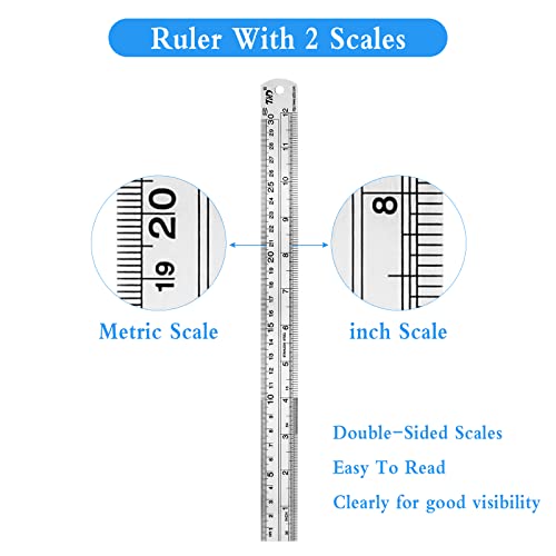 Scala INCH e scala MATRIC: Ogni righello in acciaio inossidabile ha una scala bilaterale, che stampa su entrambi i lati con scala in pollici e scala metrica. Cancella contrassegnato con valori di scala precisi.