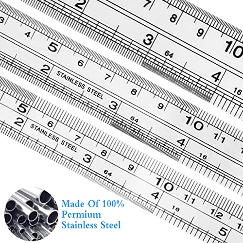 Righello in Acciaio Inossidabile Set 9 Pezzi Righello In Metallo con Bordo Dritto Metrico da 6 Pollici + 8 Pollici + Righello di Precisione da 12 Pollici per Ingegneria