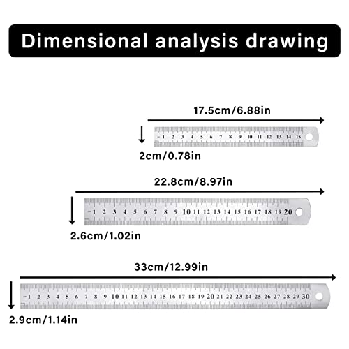 YMDZ 3 Pcs Righello in Acciaio Inossidabile Kit Strumento di Misurazione Righello Acciaio 15 cm 20 cm 30 cm Righello Metallo