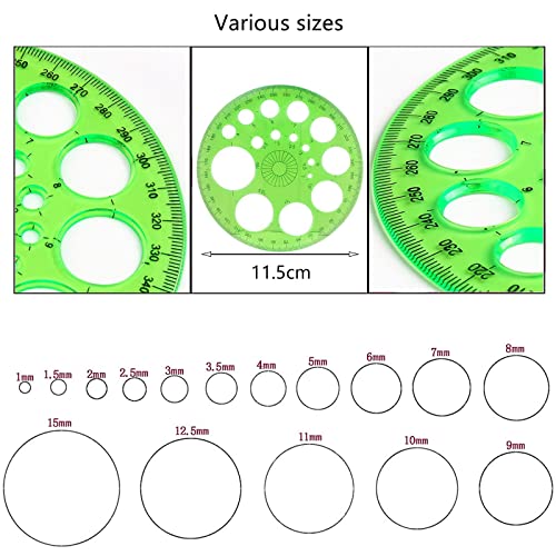 Righello Circolare Rotondo Misurare gli Angoli Goniometro Righelli con Modelli di Cerchi Righello Modello Disegno Geometrico Mascherina di Plastica per Realizzare Cerchi Perfetti di Varie Dimensioni