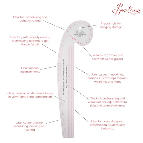 Righello da cucito per patchwork e quilting, French Curve: Imperial