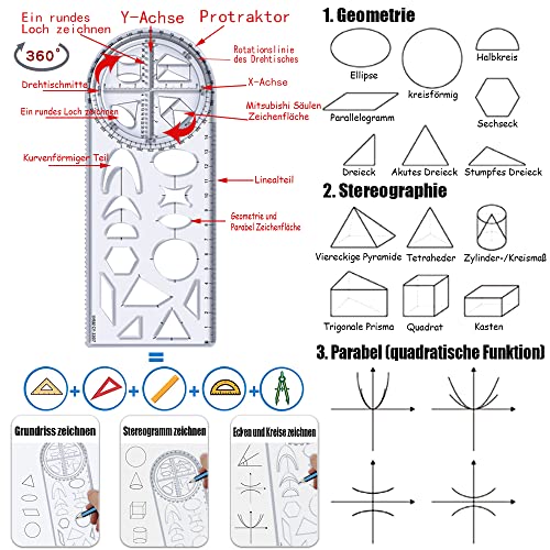 Righello Da Disegno Multifunzione,Righello Geometrico Multifunzionale,3 PCS Righello Geometrico Multiuso,Righello Geometrico Matematico,Righello Per Disegno Geometrico