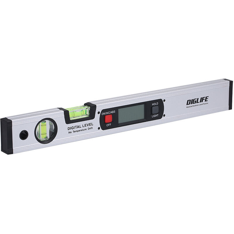 Caratteristica: Realizzato in materiale di alluminio di alta qualità, ha una lunga durata e non ti danneggerà durante il processo di misurazione. Grande schermo LCD per una lettura chiara dei dati di misurazione. La funzione di conservazione dei dati semplifica la lettura dei dati di misurazione. Ci sono 4 potenti magnesio integrati nella base, che possono essere adsorbiti sulla superficie metallica per una facile misurazione. Bolla di livello: Progettato per misurare facilmente i livelli orizzontali e verticali. I dati sono facilmente leggibili utilizzando la funzione di inversione automatica e la lettura digitale verrà automaticamente invertita. Ampia gamma di applicazioni, adatte per la lavorazione del legno, mobili e relativi lavori di livellamento. Specifica: Tipo di oggetto: Livello Materiale: lega di alluminio + plastica Colore: argento, rosso (opzionale) Precisione: ±0,2° Risoluzione: 0,1° Campo di misura: 0~90° 2 batterie AAA da 1,5 V Dimensioni del prodotto: 420*50*20