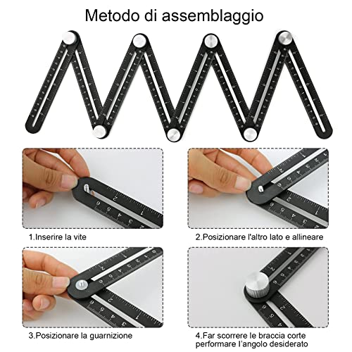 Portatile e facile da riporre:Il righello angolare è leggero, progettato per un uso pratico e può essere piegato per riporlo facilmente. Uno strumento indispensabile nella tua scatola!