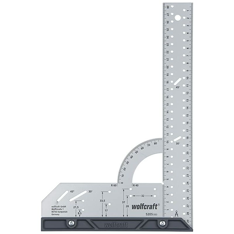 Misura, segna, disegna ed esegui tagli guidati Squadra quadrata, goniometro, plotter parallelo, incisore e guida punte per cerniere nascoste in un unico strumento Stopper in plastica rimovibile per una pianificazione precisa marcatura o contro i bordi Modello in metallo di alta qualità con scalatura su entrambi i lati Per raggi, cerchi e cerniere invisibili