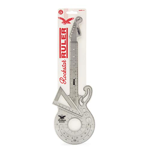 Suck UK - Righello Rockstar da 15 cm, goniometro e set di geometria quadrata da 60°, righello trasparente infrangibile, righello in plastica trasparente e righello di cancelleria musicale