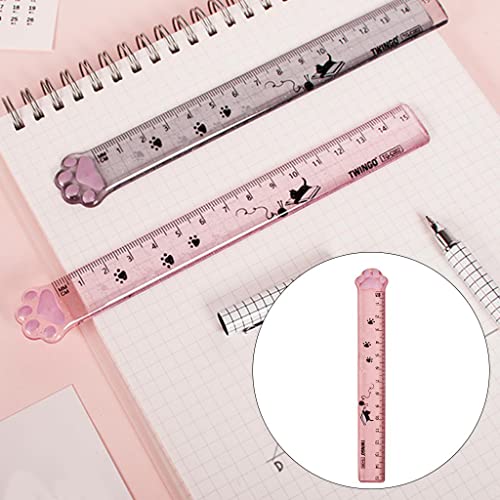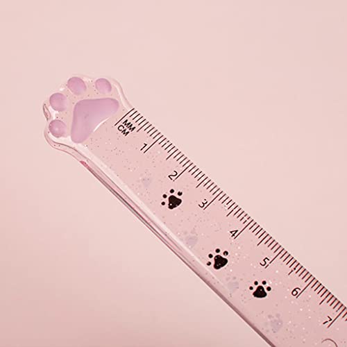 Righello per studenti Righello dritto Gatto a forma di zampa Scala di misurazione Cancelleria trasparente Accessori per ufficio scolastico - Rosa