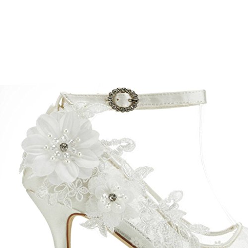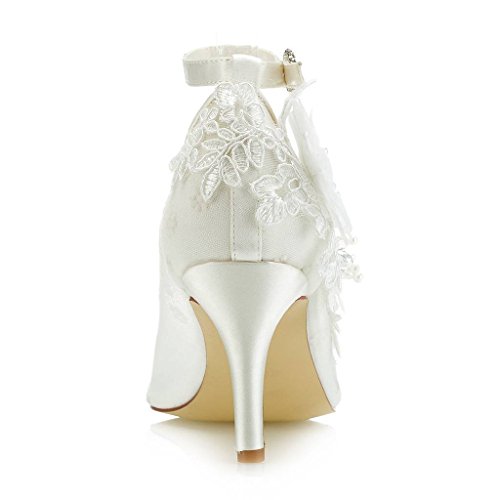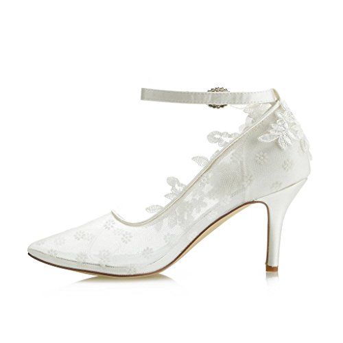 Mrs Right 16239 Scarpe da Sposa da Donna Punta Chiusa Tacco a Spillo Décolleté di Raso in Pizzo Fiore di Raso Filato Netto Scarpe da Sposa Colore Avorio, Taglia 40 EU