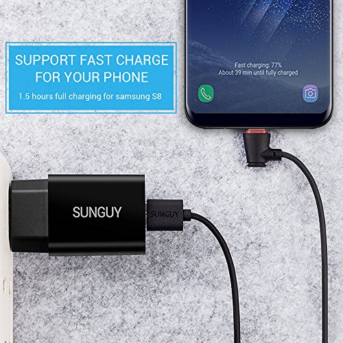 Right Angle USB Type C Cable, SUNGUY [2-Pack] 3m/10ft 90 Degree High Speed USB 2.0 to USB C Data Cable for Samsung Galaxy S8/S8 Plus/Note 8 Charging Cable, for Google Pixel/Nexus/5X/6P Charger Cable