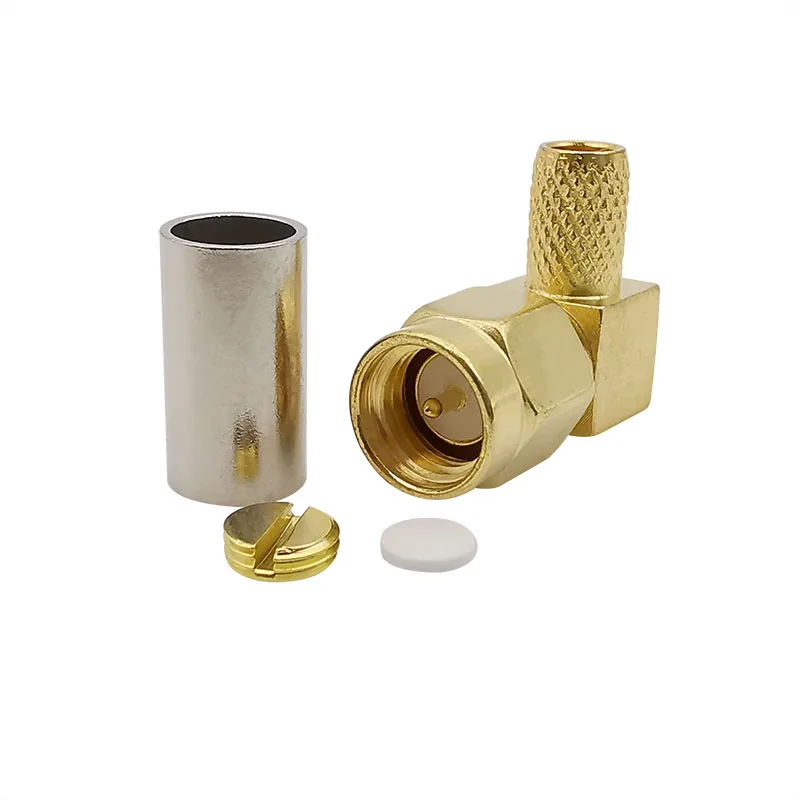 1Pcs Right Angle SMA Male Crimp RF Connector Brass Gold Plated SMA Plug Solder Adapter for RG58 RG400 RG142 LMR195 Coaxial Cable