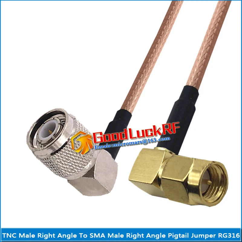 1X Pcs TNC Male Right Angle to SMA Male 90 Degree Right Angle Coaxial Type Pigtail Jumper RG316 Cable SMA to TNC Low Loss