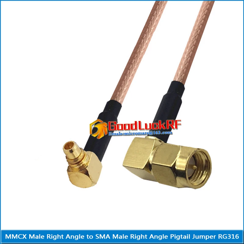 MMCX Male Right Angle 90 Degree to SMA Male Right Angle Plug Coaxial Pigtail Jumper RG316 extend Cable Tpye L Low Loss