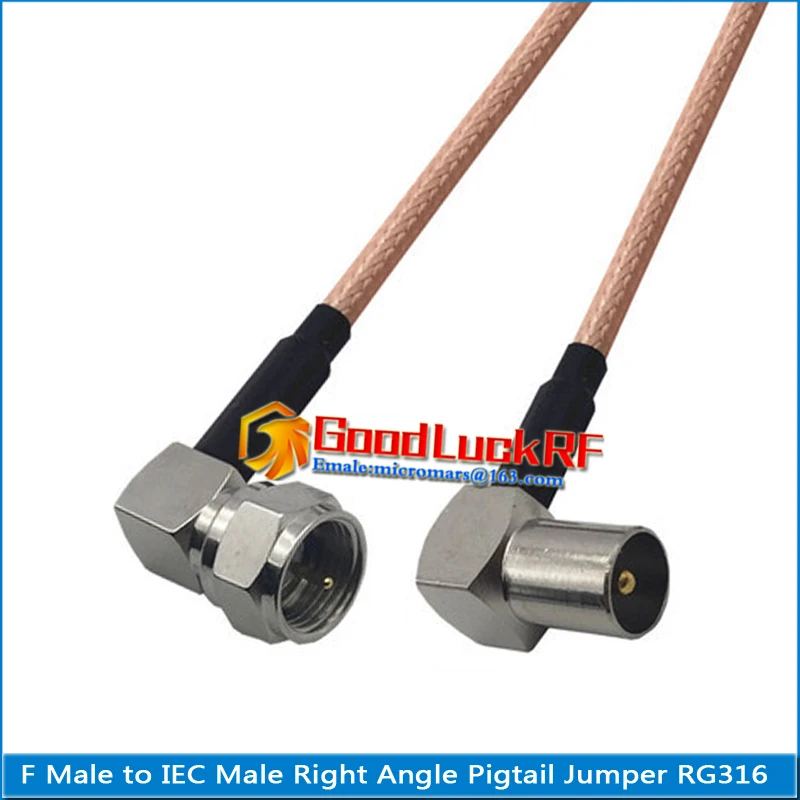 TV F Male Right Angle to IEC Male 90 Degree Type L Plug Pigtail Jumper RG316 extend Cable 50 ohm Low Loss High-quality