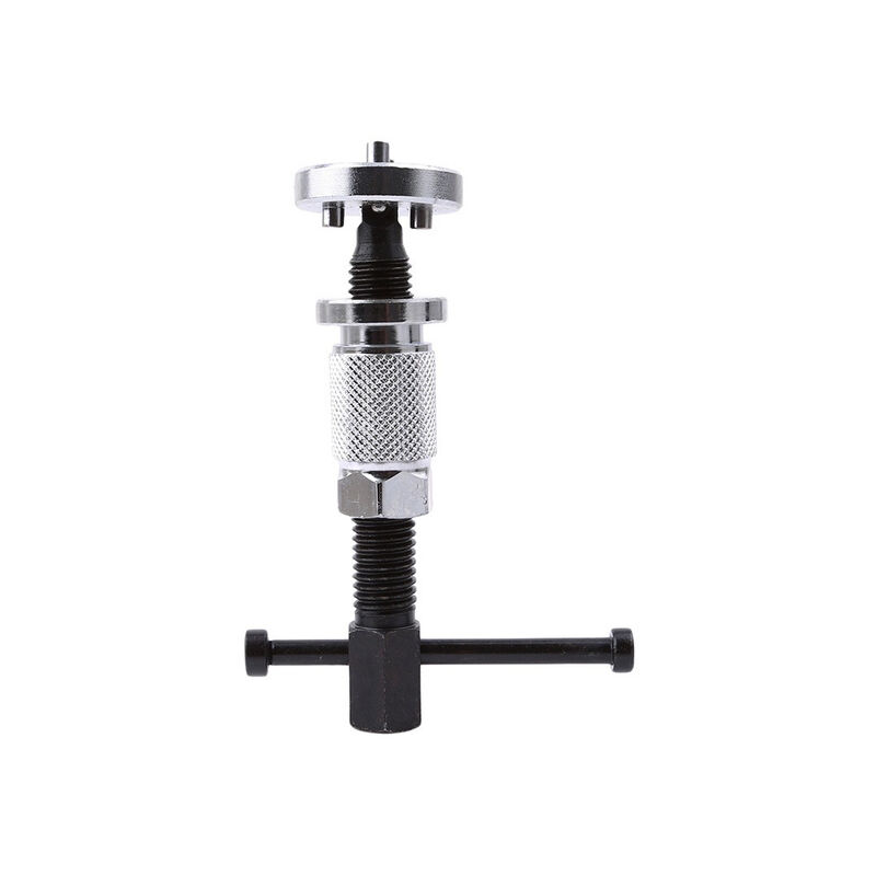 Strumento di riavvolgimento del pistone del freno. * Da utilizzare sulle pinze dei freni a disco montate sulla maggior parte delle auto con filettatura destra. * Completo di piastra di reazione e reversibile 3/8 " testa del perno a doppia guida.