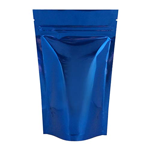 Rightpak blu lucido alluminio stand Up tasche con cerniera e richiudibile tear notch per imballaggi alimentari (100QTY) SP1-8cm x 13cm + 5cm