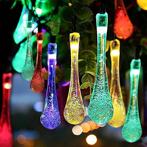 BELL'ASPETTO:30 LED per set,forma delle luci,che sono una sorta di lacrima(8cm in lunghezza).Rosso,verde,blu,giallo,colorato illuminazione danno un piacevole effetto di decorazione.