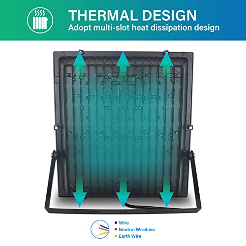 ◑ Eccellente dissipazione del calore: adotta alluminio pressofuso addensato, non solo garantisce la forza dell'inondazione di luce, ma anche il design convettivo della nuova aerodinamica termica ottiene un'eccellente dissipazione del calore e prolunga la durata delle lampadine.
