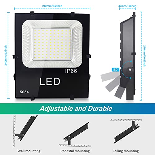 ◑ Luce di inondazione impermeabile IP66: come luce di inondazione a led impermeabile per esterni con grado di protezione IP66, adatta sia per l'illuminazione interna che esterna, può essere applicata in giardino, cortile, prato, campo da basket e calcio, patio, cortili, parcheggi, hotel, piazze, cartelloni pubblicitari, fabbriche, banchine, stadi e altri luoghi in cui è necessaria l'illuminazione.