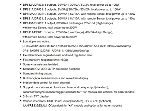 RIGOL DP832 Alimentatore DC, 3 uscite, 30V/3A || 30 V/3 A, 5 V/3 A, 195 W, Ripple e rumore ridotti: