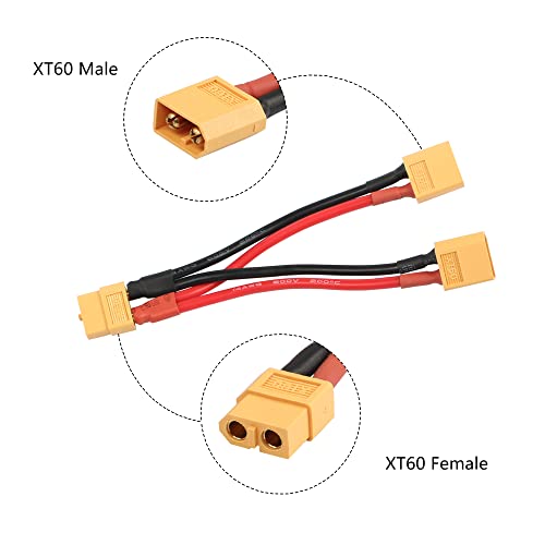 RIIEYOCA XT60 Adattatore Connettore Batteria Parallela Doppia Estensione XT60 Splitter Y Cavo 14AWG da 1-Femmina a 2-Maschi per Elicottero RC Mode