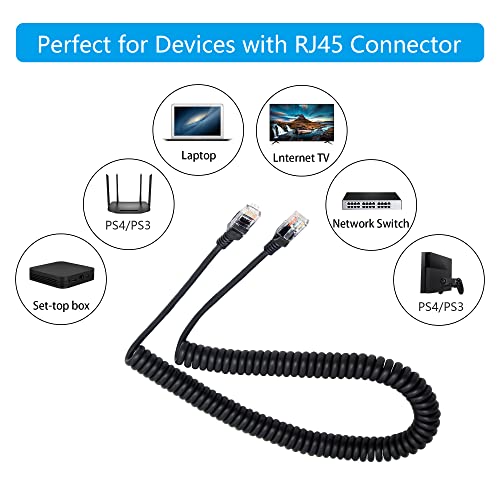 【Design a molla】 Cavo a molla Ethernet Cat5e RJ45, quando i nostri due dispositivi sono collegati, il filo a molla è portatile e non ha avvolgimento, (lunghezza di allungamento: 4.92Ft) fino a quando si desidera allungarlo, è più conveniente e ordinato da usare.