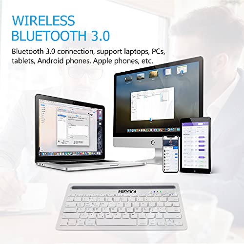 RIIEYOCA Multi Devcie - Tastiera Bluetooth per iOS, Android, Windows, Doppia Modalità & Ricaricabile Slim Wireless Keyboard per Tablet, Smartphone,PC, Layout Inglese UK QWERTY(bianco)